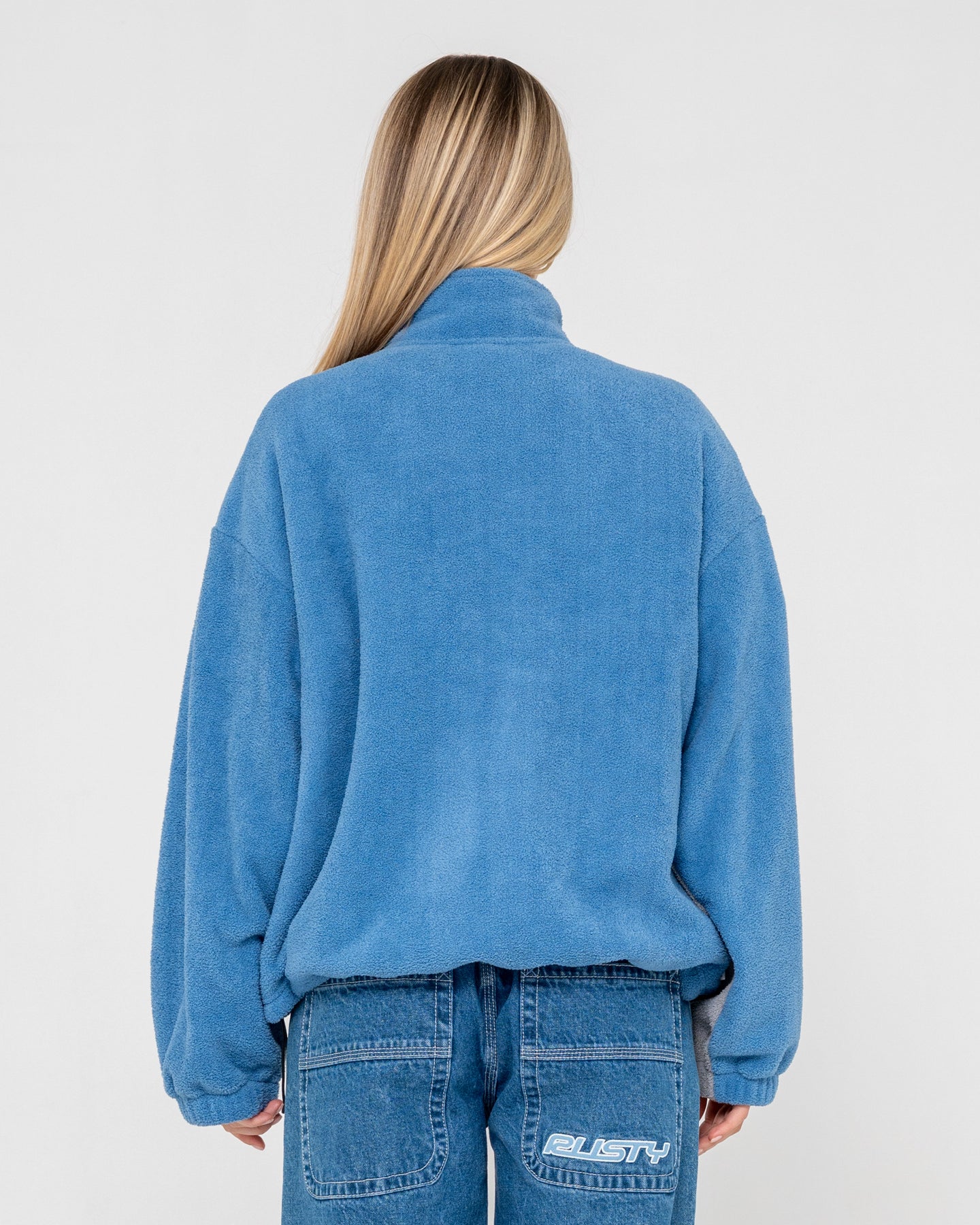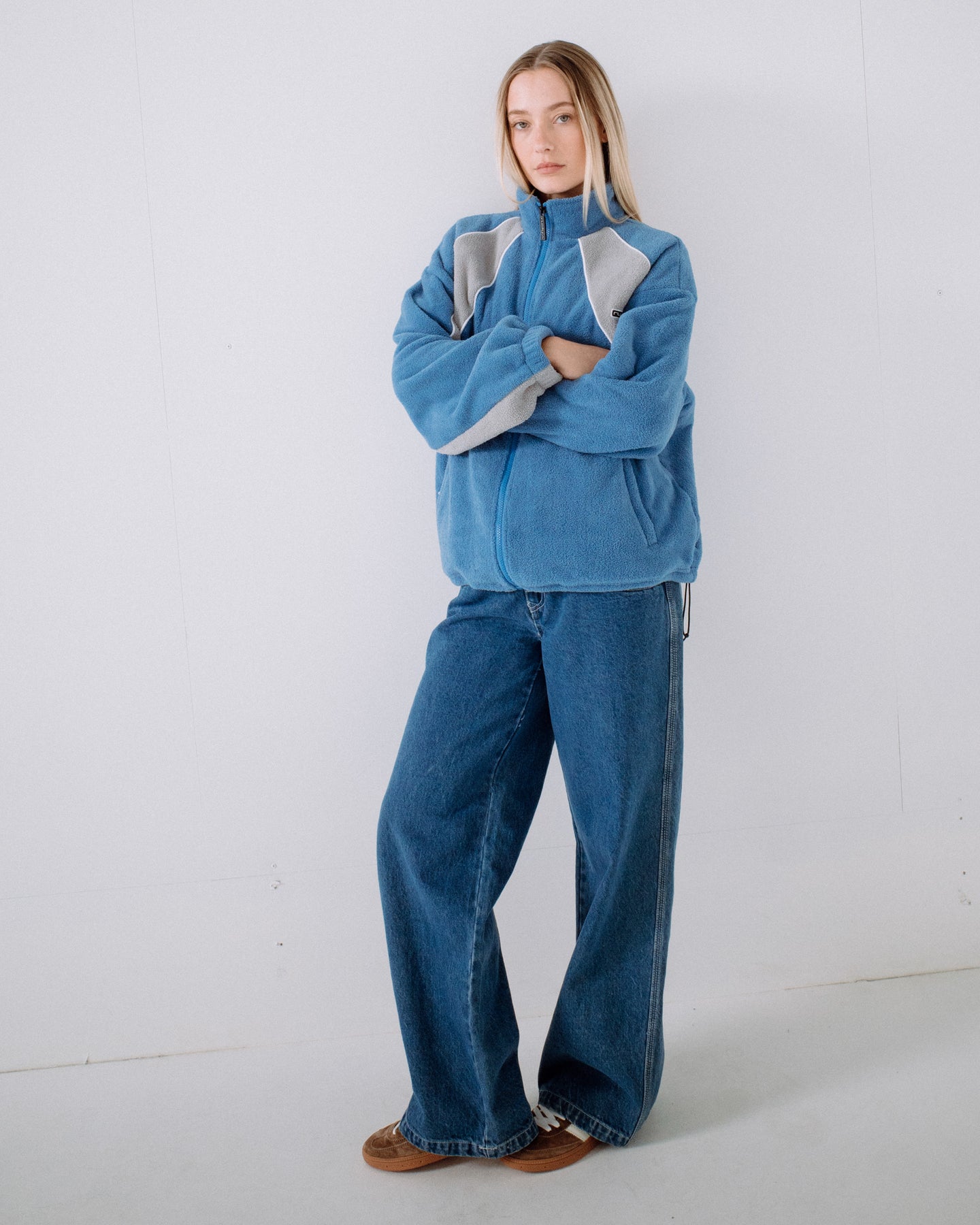 TWO TIDES ZIP THROUGH SHERPA FLEECE - BLUE / GREY