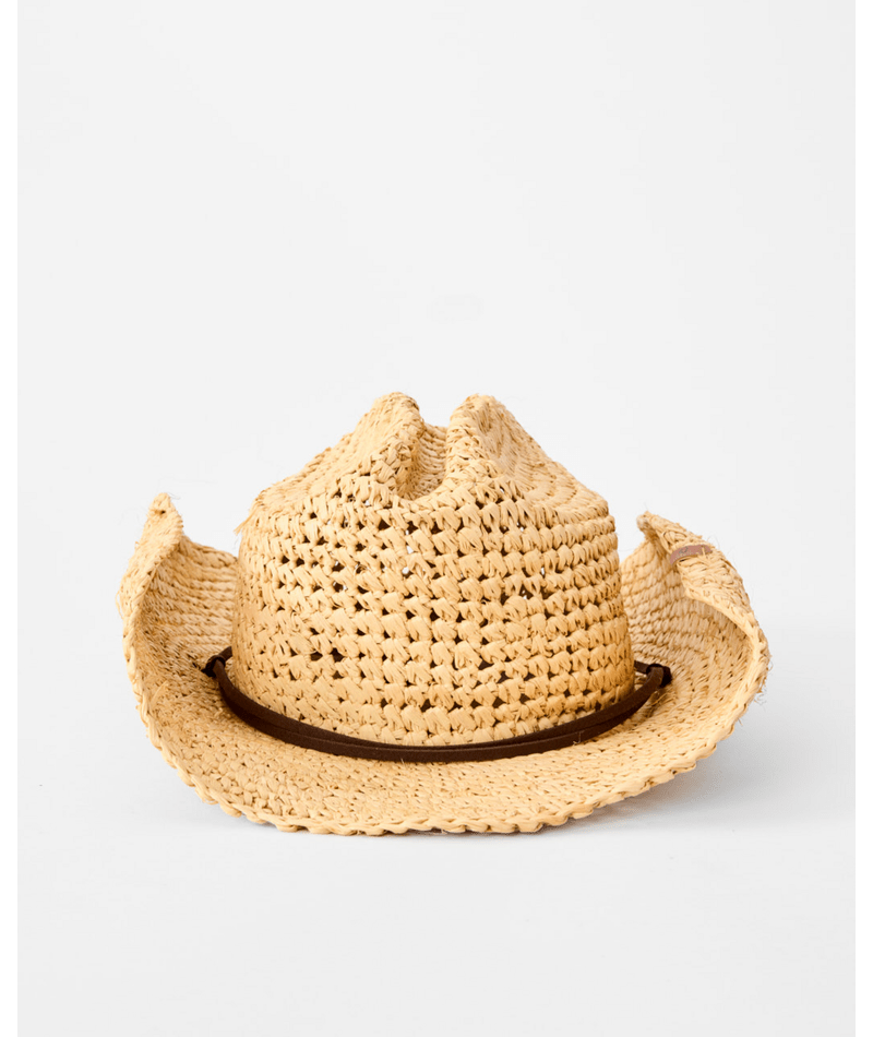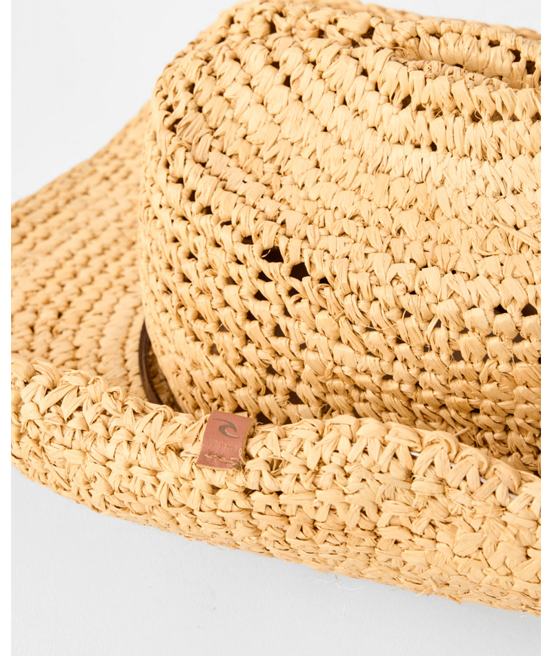 060WHE-0031 RAFFIA STRAW 100% STRAW Mid brim OSFM Womens head circumference 54cm-59cm/21.2-23.2 Metal badge Hand-made Fancy crochet weave Leather look thonging chin strap and stopper