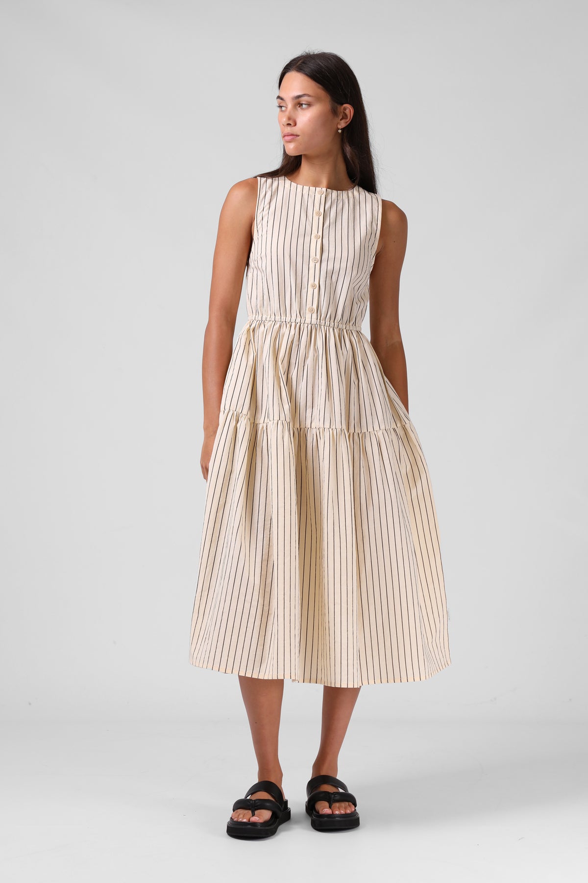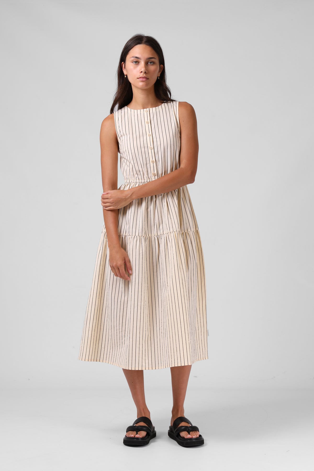 Smock Midi Dress - Cream Stripe